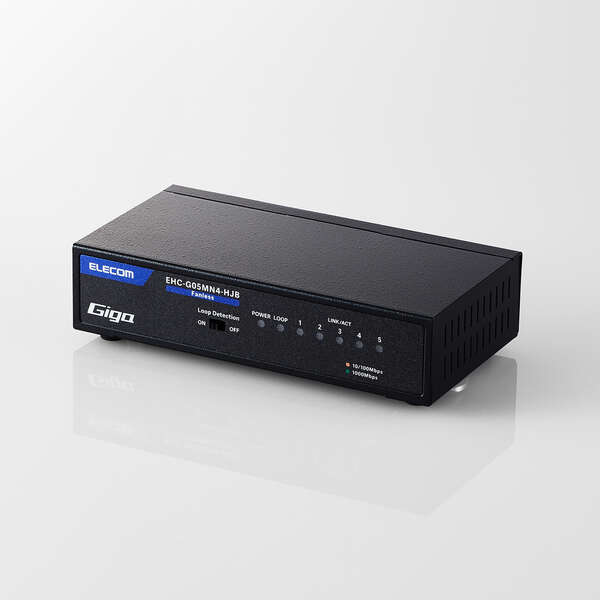 Giga対応スイッチングHub/5ポート/金属筐体/磁石付き/電源内蔵モデル/ブラック