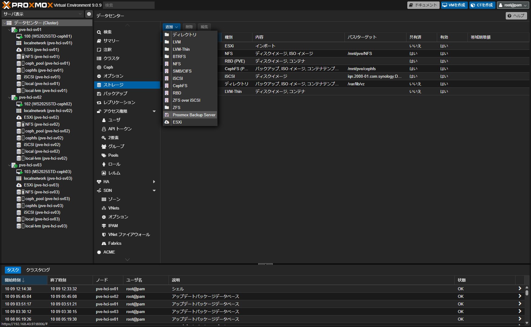 - ノード数:3ノード構成(pve-hci-sv01 / pve-hci-sv02 /pve-hci-sv03)