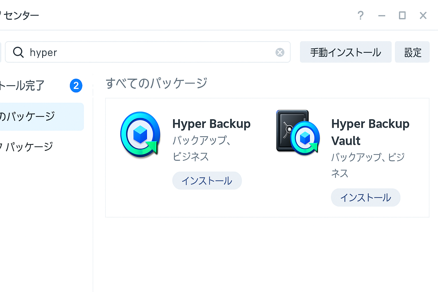 検索窓に『hyper』と入力し、Hyper Backup Vaultを表示させ、インストールを