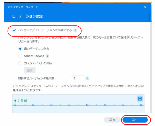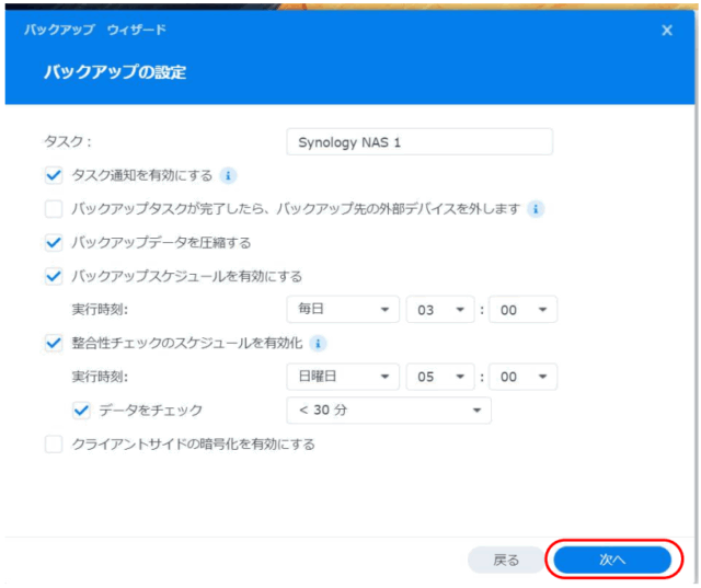 バックアップのスケジュールを設定頂き次へをクリックします。