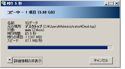 WindowsServer機から上記共有フォルダに5GBのデータを転送してみました。
