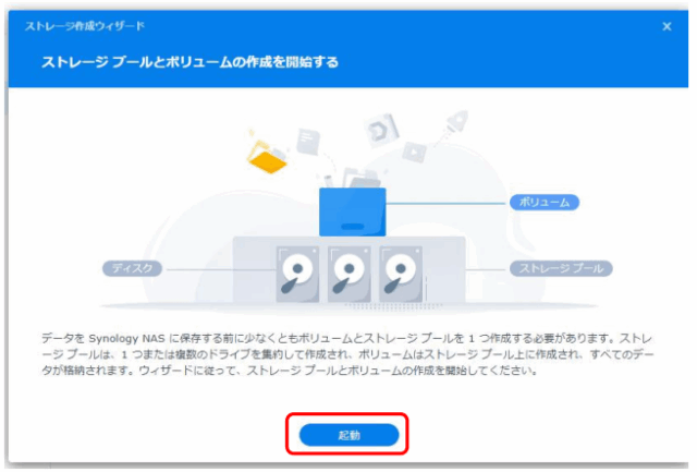 ストレージ作成ウィザードウィンドウの[起動]をクリックします。