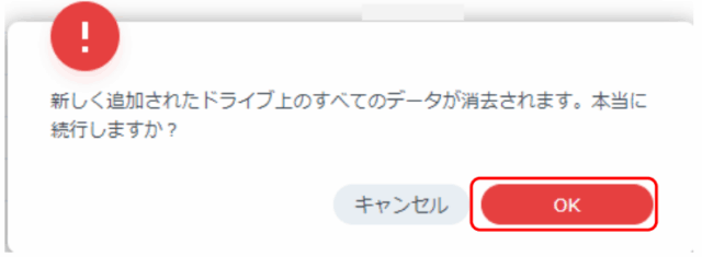 Synology製品互換性リストにないHDDは警告がでます。[続行]をクリックします。