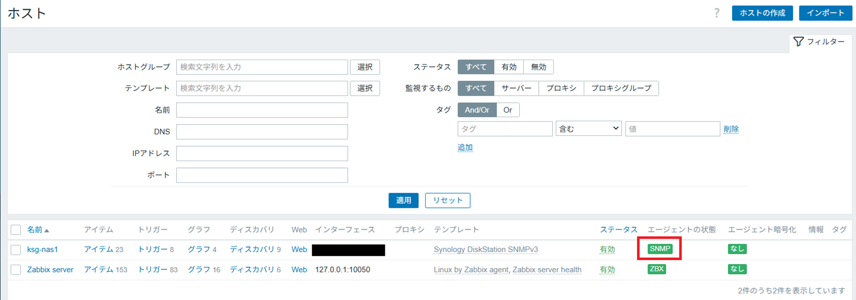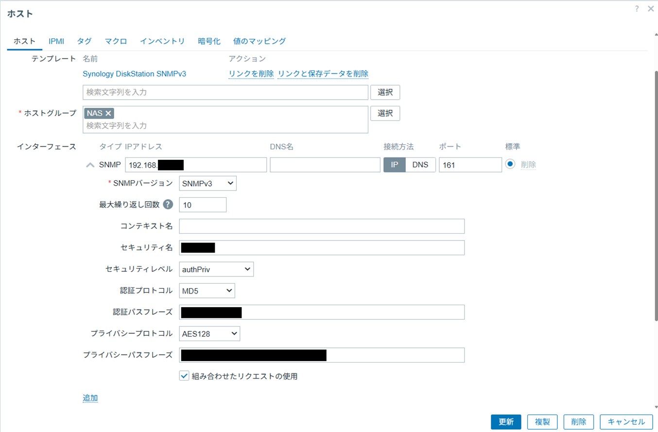 5.ZabbixにSynologyを登録しテンプレートを適用