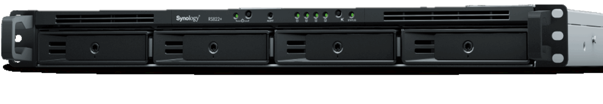• RS822+ (4ベイ): RS822+は、奥行き約33cmとコンパクトな1U 4ベイラックマウントNASです。AMD RyzenプロセッサとECCメモリを搭載し、中小企業やエッジ環境でのデータ管理に最適。拡張ユニットで最大8ベイまで増設可能なほか、PCIeスロットで10GbEカードやSSDキャッシュの追加にも対応します。省スペースながら高い拡張性と信頼性を備えた一台です。