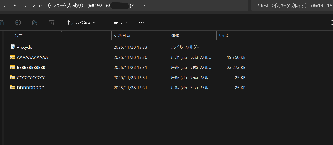 イミュータブルスナップショットを取得した共有フォルダのデータを疑似的に暗号化(パスワード付Zip)してみます。