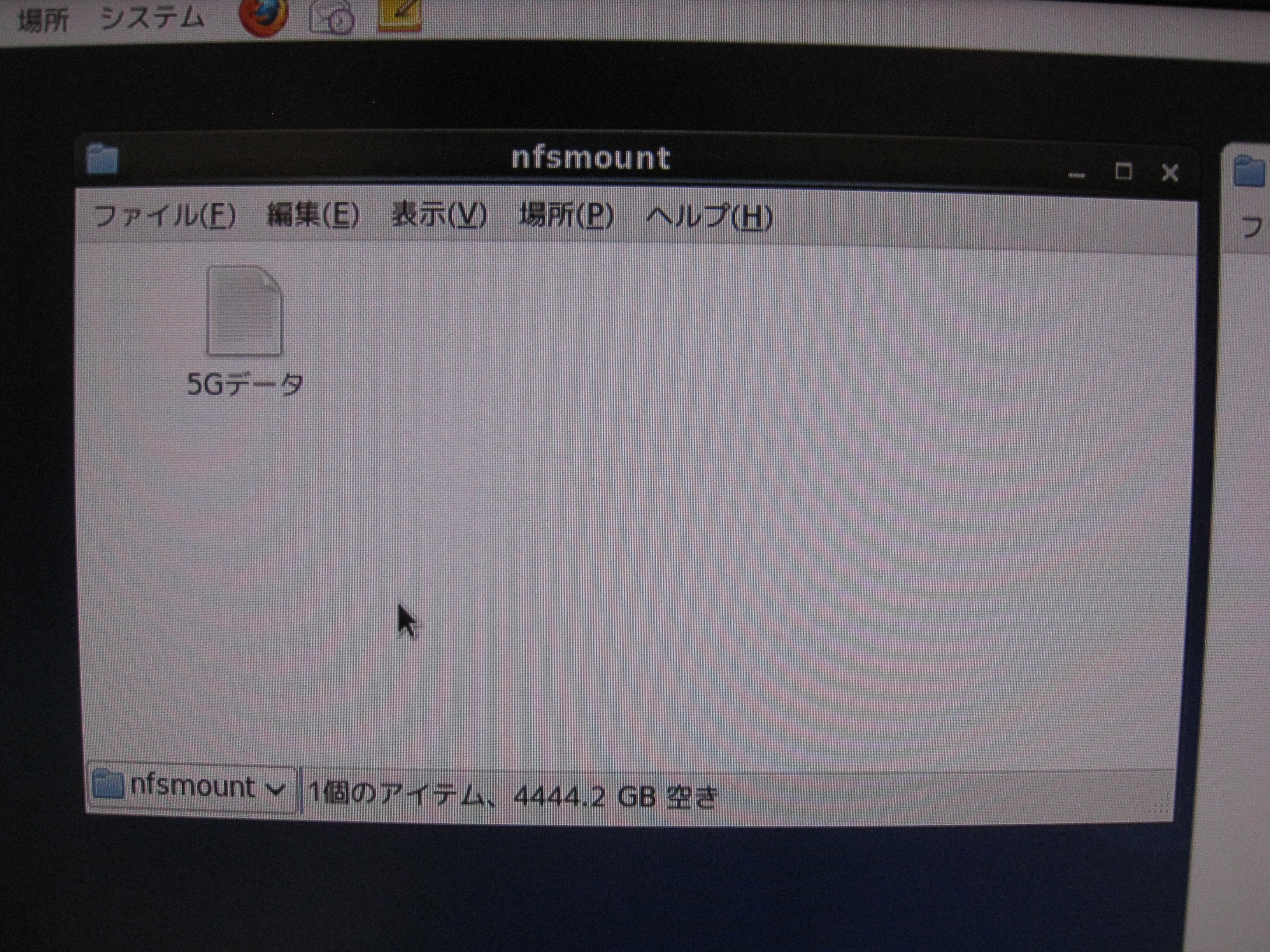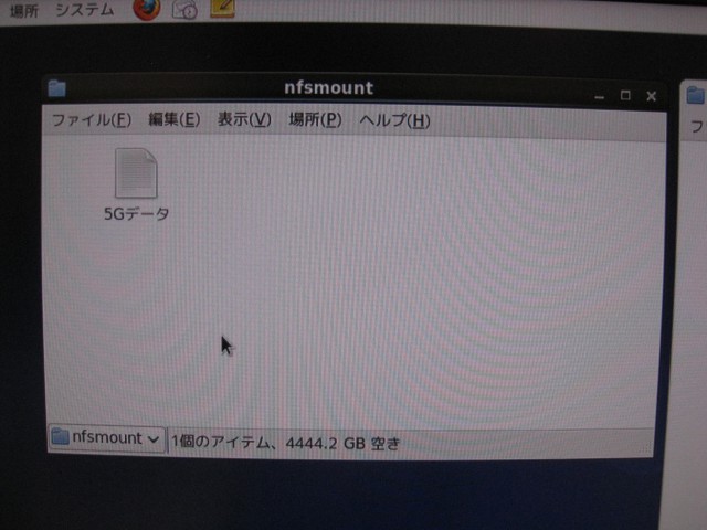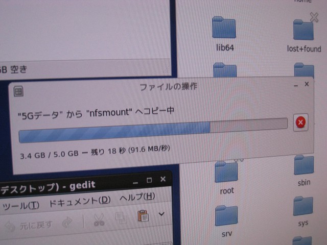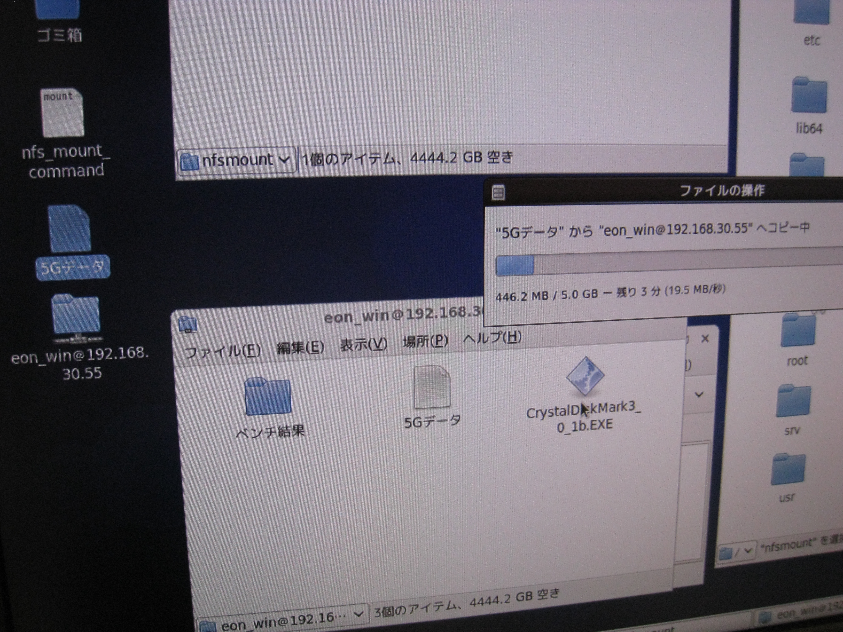 ③マウントしたnfsmountの転送速度を計測してみます。デスクトップ上においてある5GBのデータを転送しました。