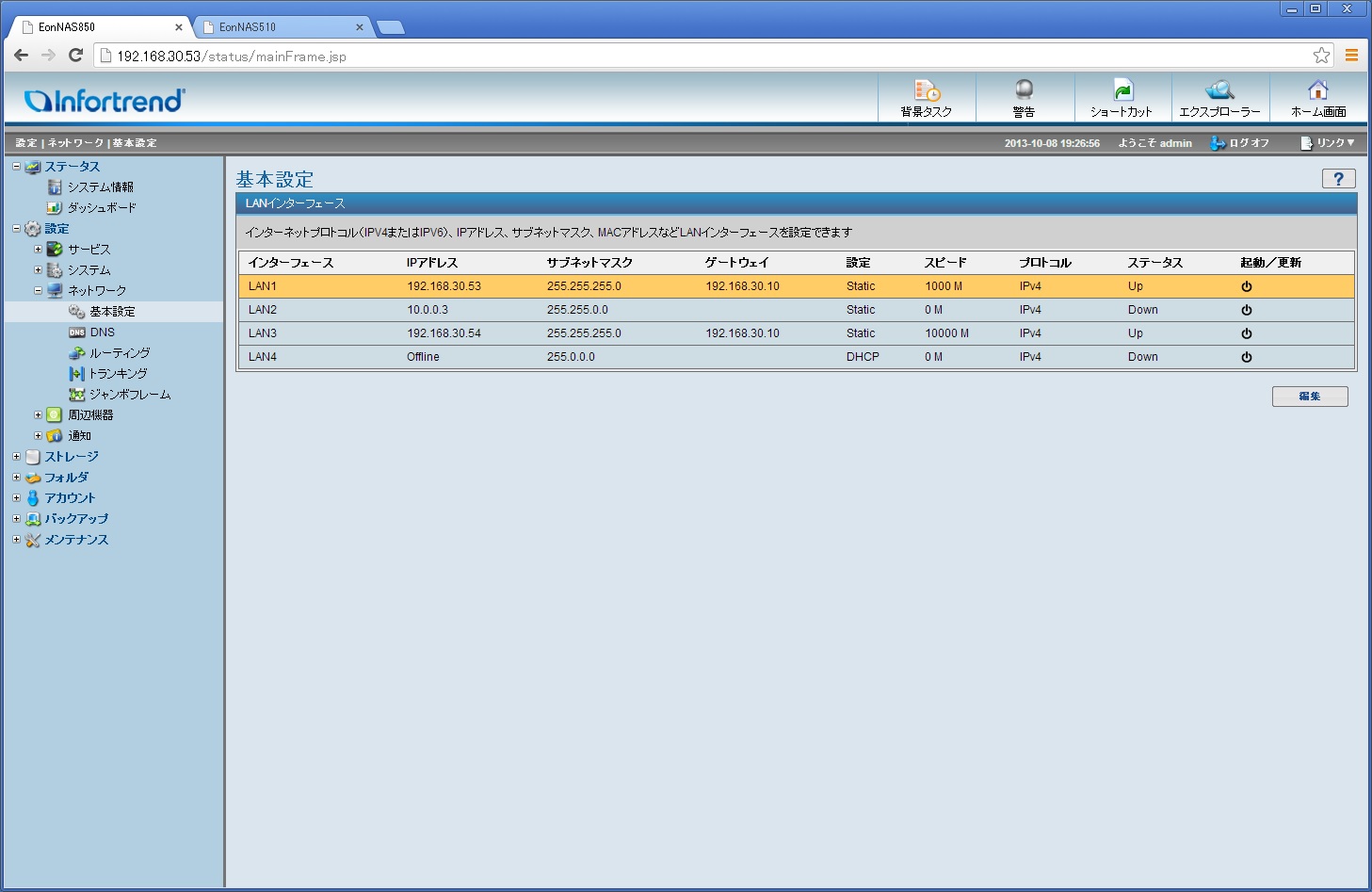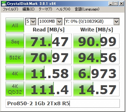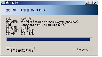 操作方法等はEonNASシリーズは統一されておりますので割愛いたします。それでは運用中の速度を計測してみます。