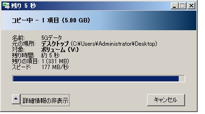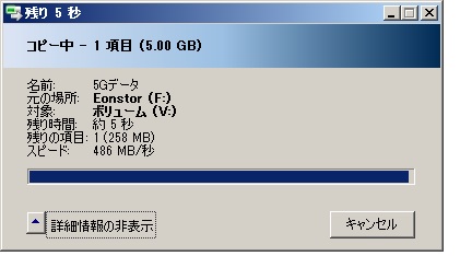 思ったほどの値が出ませんでした。サーバにあるデータをコピーしたのでサーバ搭載のHDDがボトルネックの可能性が高いです。そこで、8GbFCを搭載しているESDSを使いました。