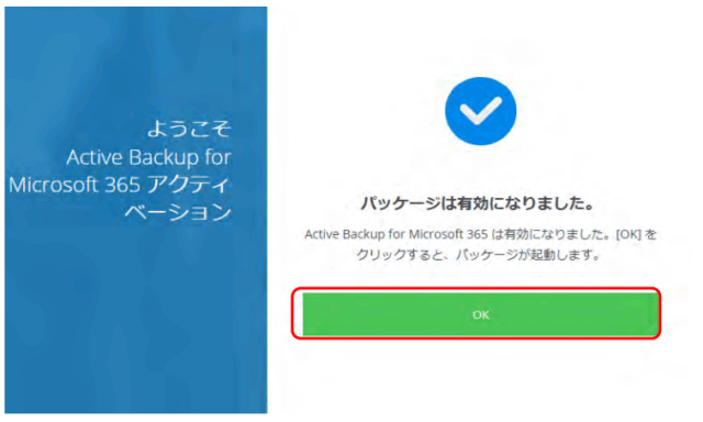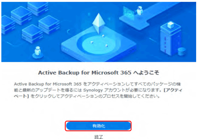 パッケージセンターより、「Active Backup for Microsoft 365」をインストールします。