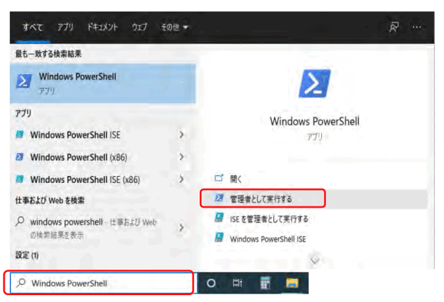 Windows画面の左下にあります検索窓にて「Windows PowerShell」と入力し、