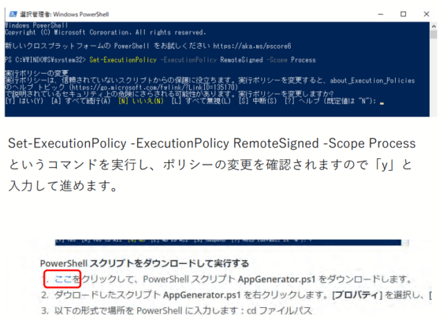「ここ」をクリックすると、AppGenerator.ps1 がダウンロードできます