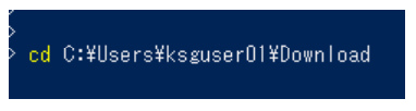 cdとというコマンドに続けて、先ほどコピーした「場所」を貼り付けます。