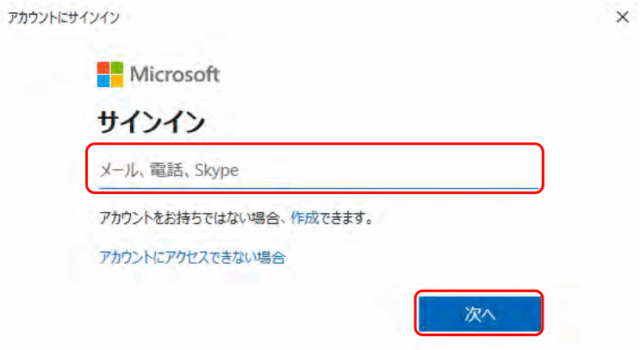 まずはメールアドレスを入力して、「次へ」をクリックします。