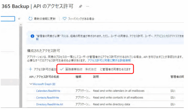 新しく作成されたアプリケーションの API アクセス許可が表示されます。