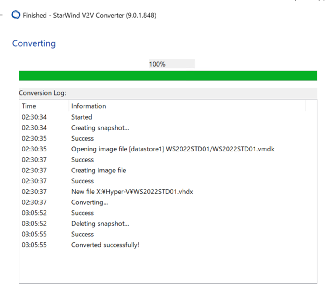 本記事では、StarWind V2V Converterを利用したVMwareからHyper-Vへの仮想マシン移行手順をご紹介しました。