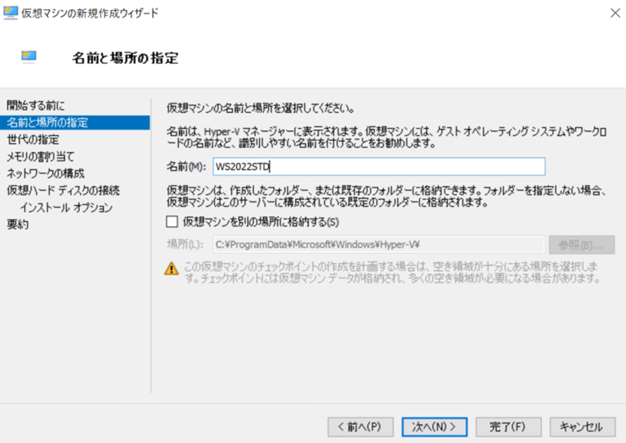 2.Hyper-V上で仮想マシンを作成