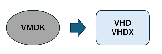 一方で、VMwareとHyper-V では仮想ディスクのファイル形式が異なるため、単純なコピーでは移行できず、仮想ディスク形式の変換(V2V)が必要となります。