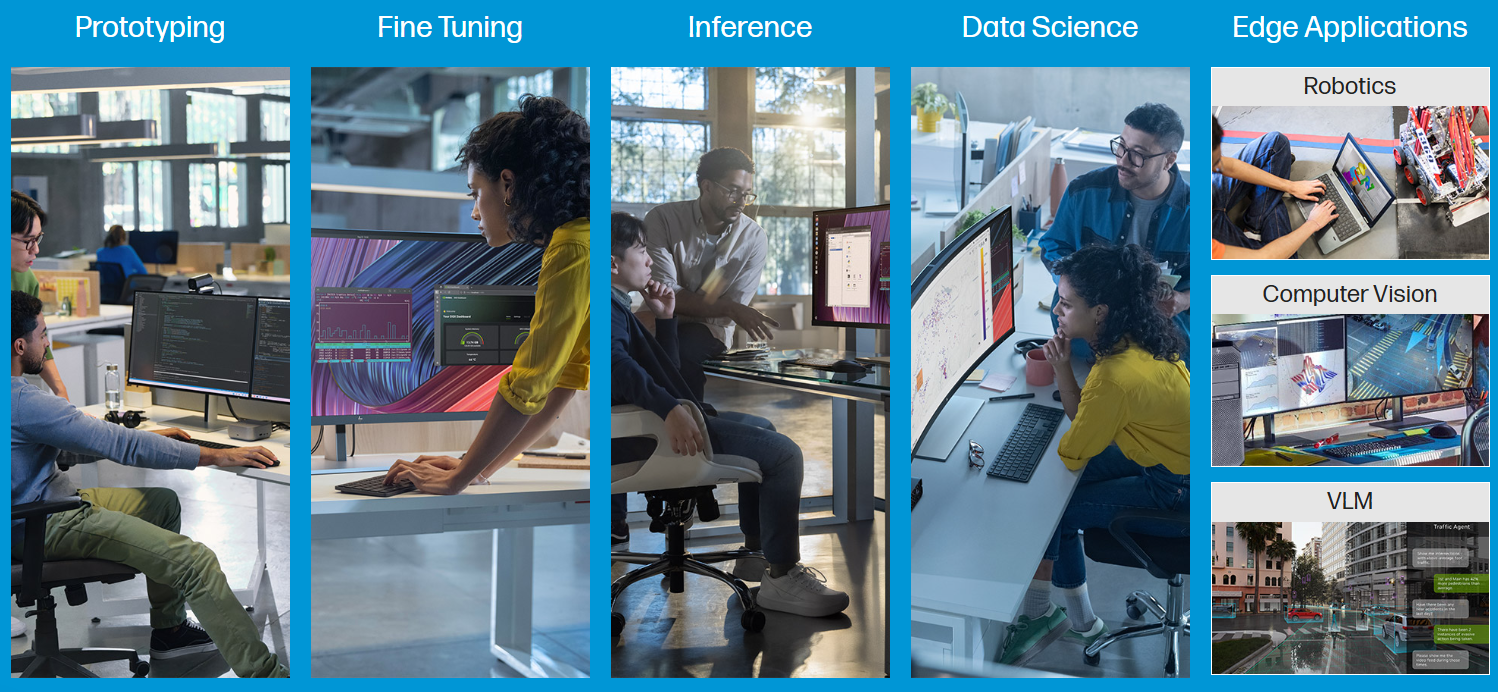 10GbEポートや高い接続性を活かし、製造・医療現場でのエッジコンピューティングに最適。ロボティクスやコンピュータービジョン(VLM)など、即時判断が求められる現場のAI化を強力に後押しします。