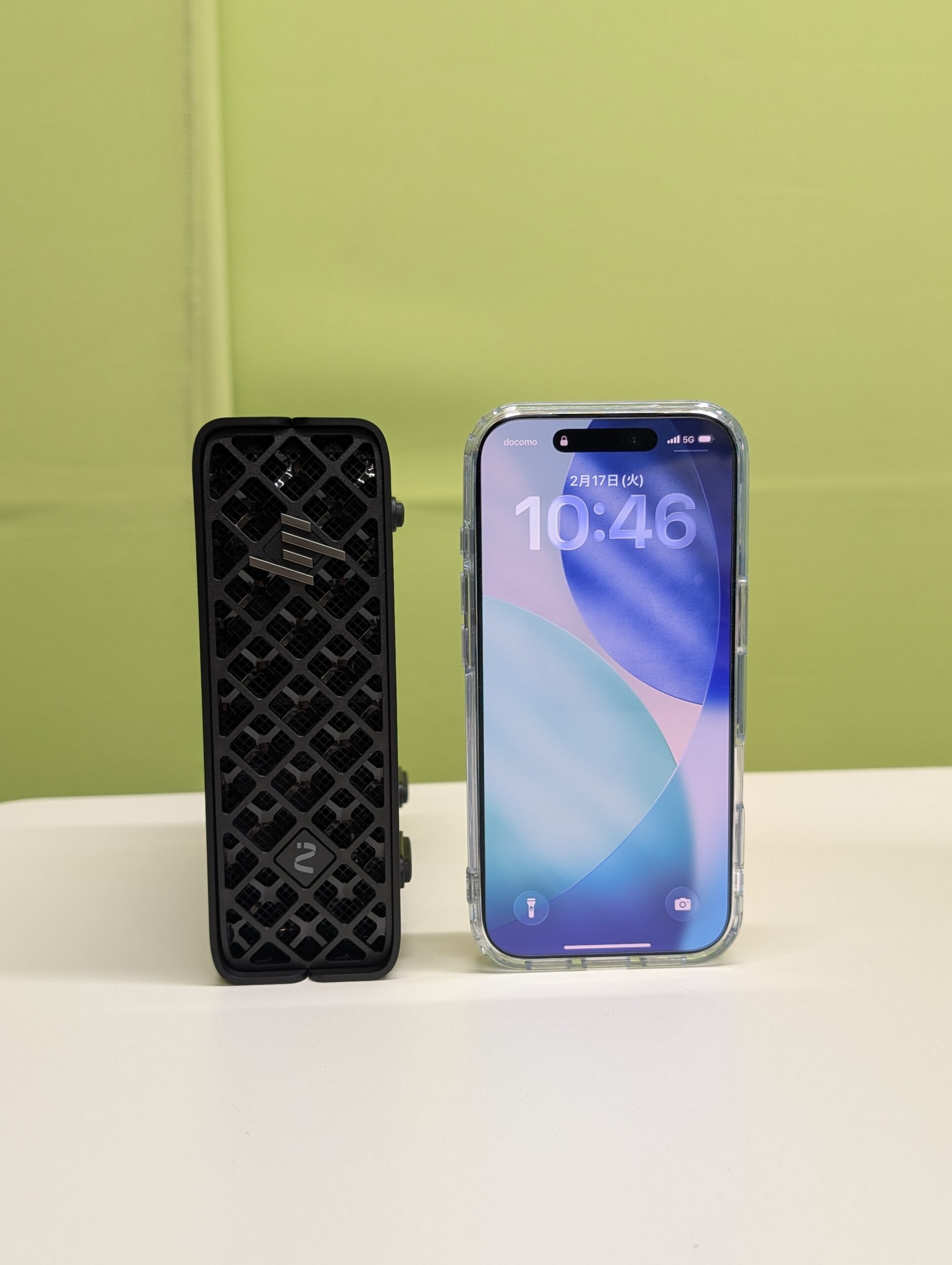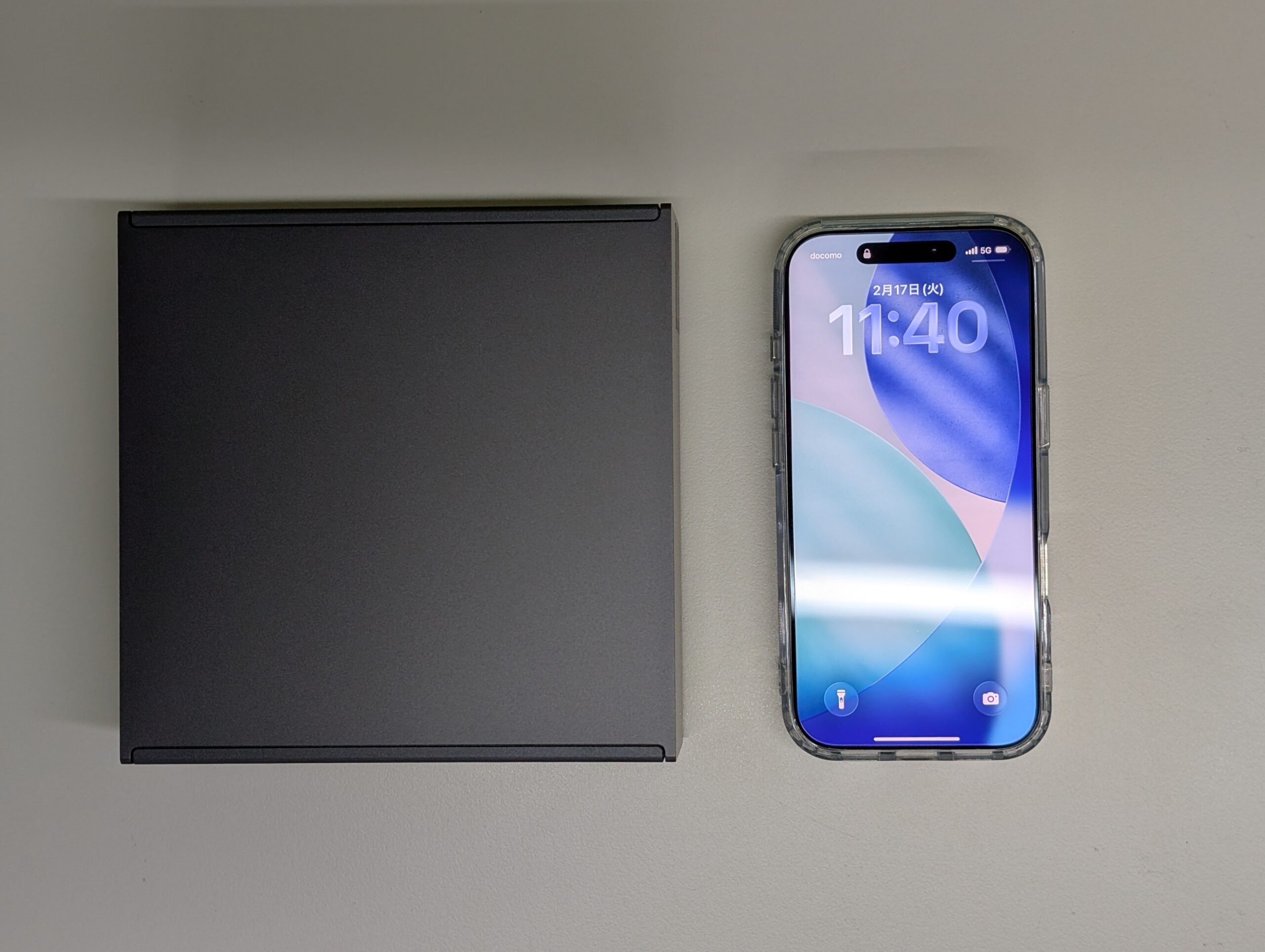 サイズ感はかなり小さく、奥行きをiPhone17PROと比べてみると画像の通り。