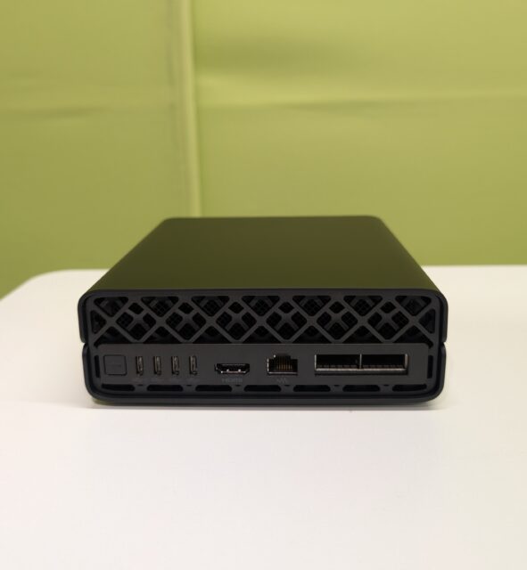 HP Z2miniあたりと形状がかなり似ており、全体的に角のないデザインになっています。