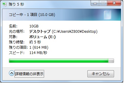 両方とも大きな変化がありません。おそらくHDD側の転送速度の問題のようです。