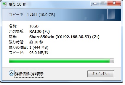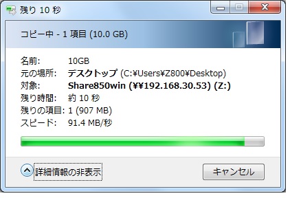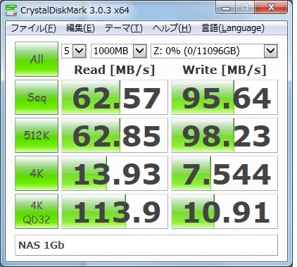 まずは850-2へNASとして接続している領域にCDMで計測。