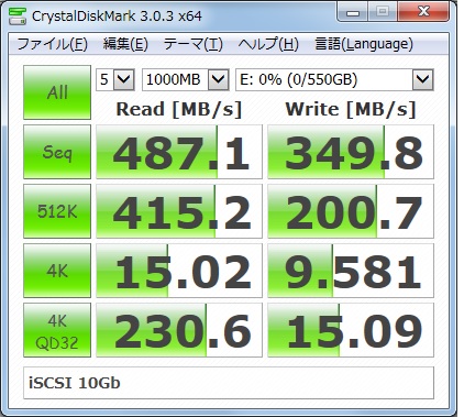 ④今回はiSCSIを使用します。一般的なNASではCIFSになりますが、以前の実験で10GbEの環境でCIFSはそれほどパフォーマンスが出ませんでした。速度重視なのでiSCSIを使用します。