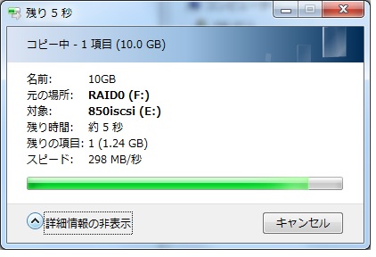 続いて、850-2へiSCSIとして接続している領域にデータを書き込み。