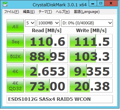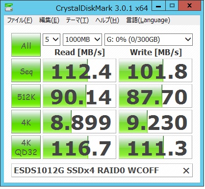 シーケンシャルはiSCSIの帯域であります1Gb近く出ておりますので問題ありません。ランダムに関しても内蔵しているストレージの種類の特性が出ているので問題ありません。なお、SATAとSASはWriteback構成です。SSDはWritethrough構成です。変更はロジカルドライブ内のロジカルドライブの設定です。