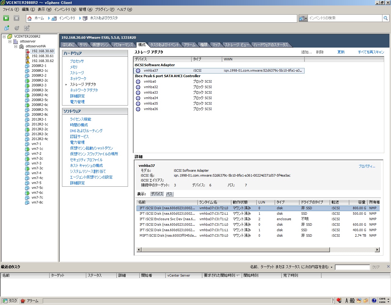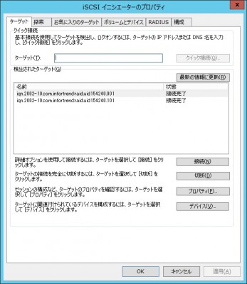 この後は、WindowsとVMwareのイニシエータからiSCSIターゲットを指定してパーティションのマウントとなります。
