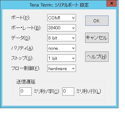 使うケーブルは、Dsub9ピンのオス・メスストレートとなります。こちらをサーバと接続して、Teraterm等のターミナルソフト使用して設定します。
