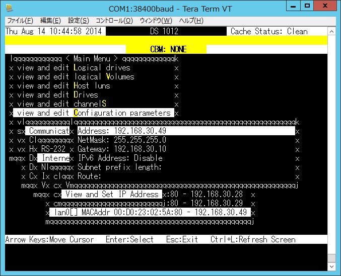 コンソールに入りましたらこのような画面が上がってきます。VT100を選び、下記のように進んでください。IPアドレスを登録します。