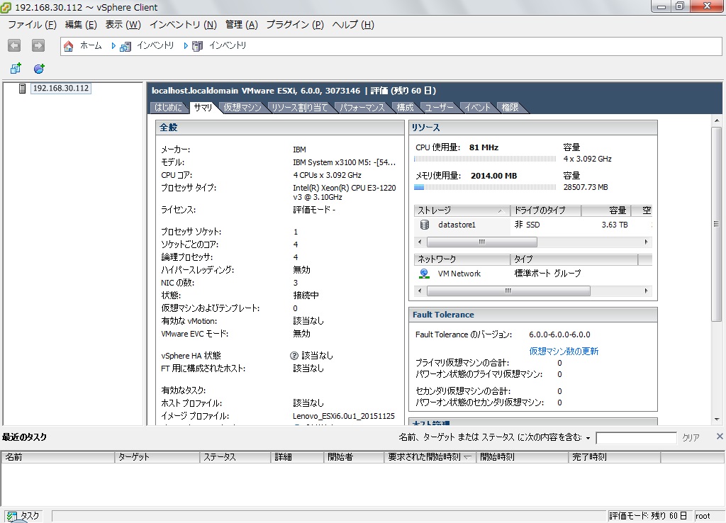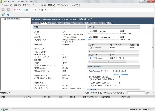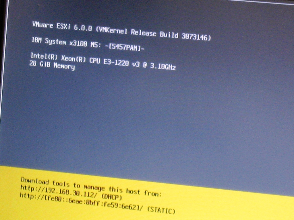 今回入荷しました、レノボ System x3100M5 5457PAN にVMwareをインストールしてみました。