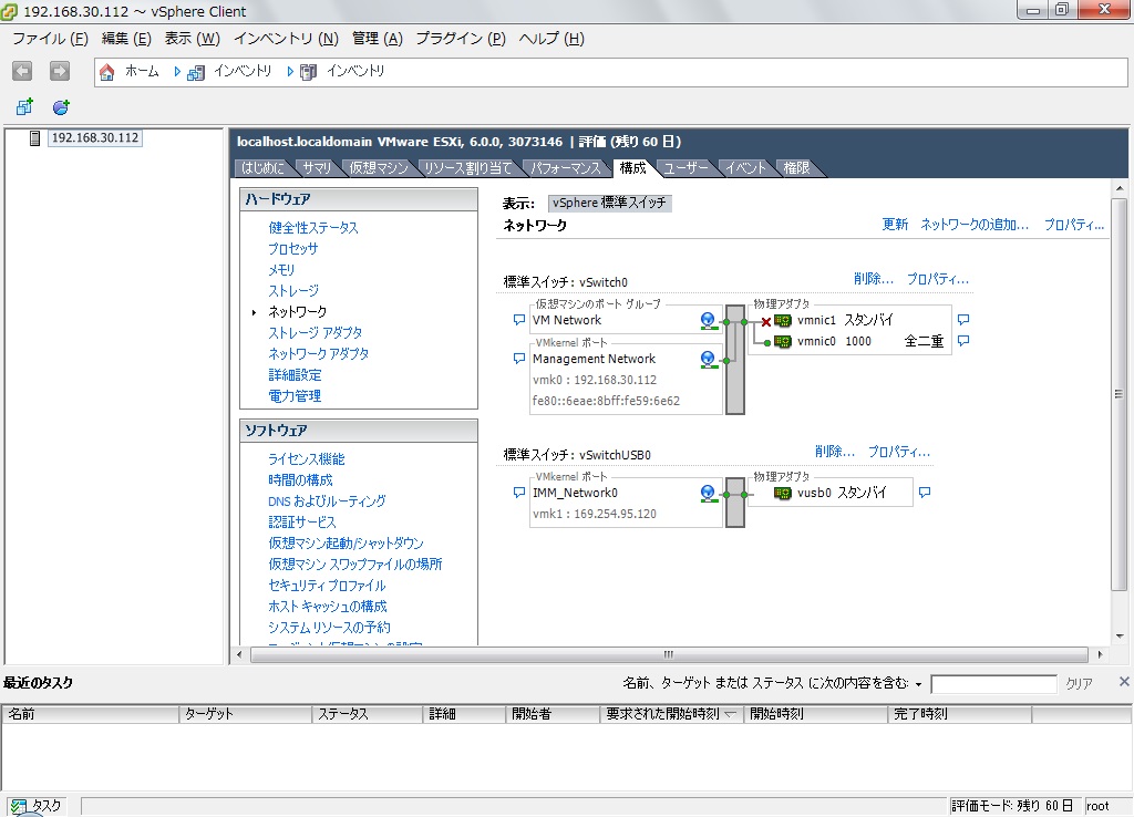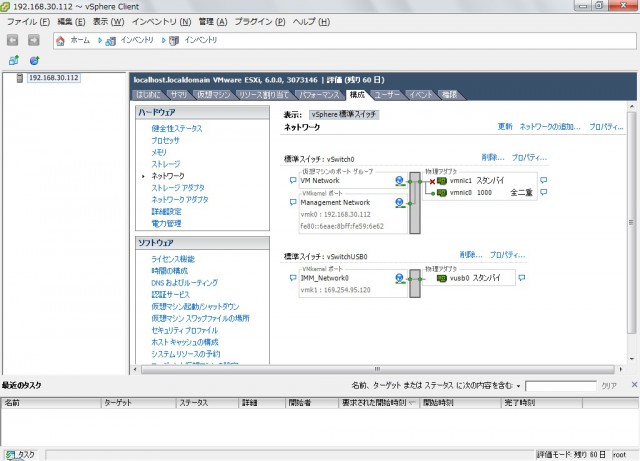 結果的にはいとも簡単に終わりました。HDDも4TB認識でデータストアに3.6TBの表示。NICも2port見えています。
