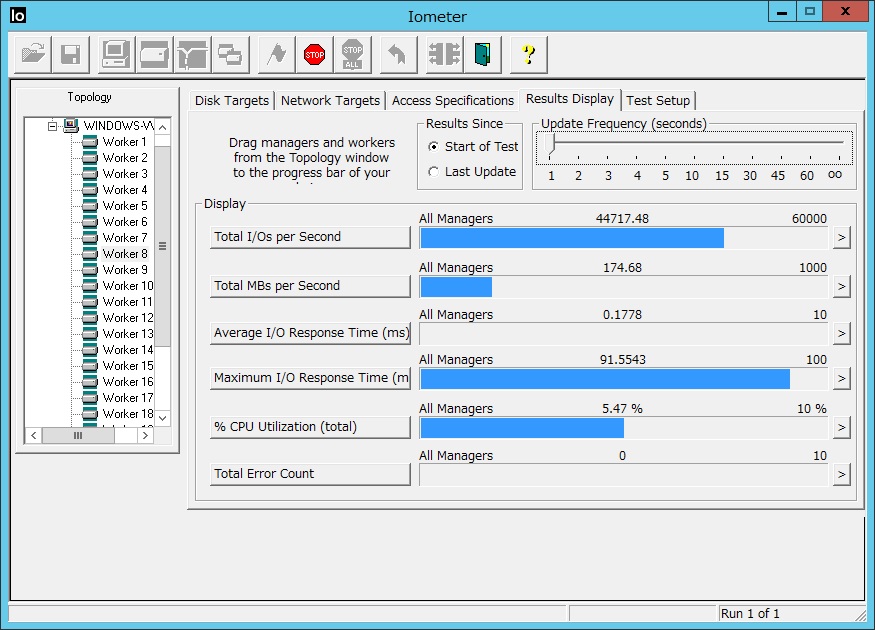 IOMeter(Random 100%、Read 40%、Write 60%、4K、Worker 8、データサイズ 10GB)