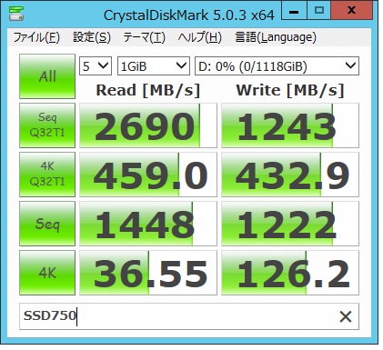 SSD750、2枚(1GBデータ)