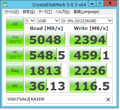 先日はNVMe P3700の記事を投稿いたしましたが、今回は廉価モデルであるSSD750が入荷いたしました。今回採用しましたのは2.5インチモデルでは無く、PCI-Eモデルです。メリットとしてはコスト面がP3700に比べて半値以下の所です。ですが、性能も半値と言うことは無くNVMeとして十分な転送速度を実現しています。