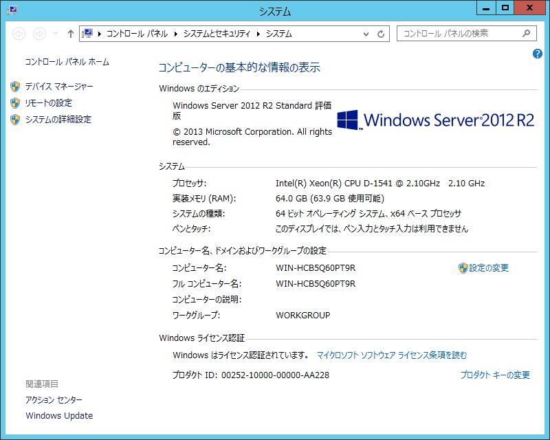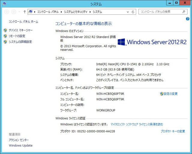 SSDにWindowsServer2012R2をインストールします。