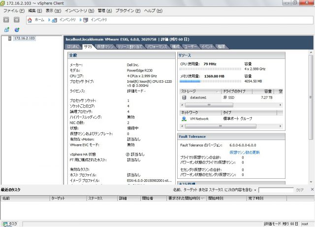 PowerEdge R230ですが、VMwareESXi6のインストールも特に手間なくインストールできます。