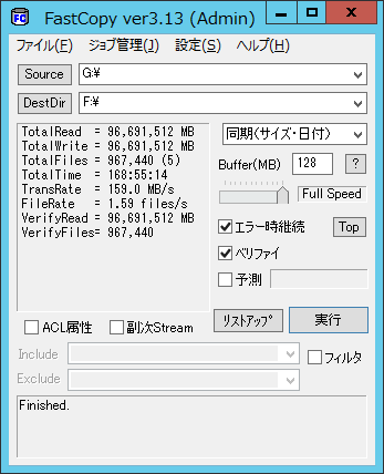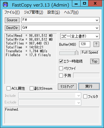 ベンチマーク結果だけでは満足出来ないというお声が出そうなので、実際にデータを大量に溜め込んで、そのファイルをバックアップしてみました。