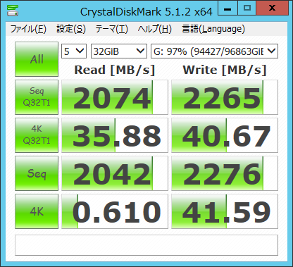 こちらも下記はHDD残量が10%を切った段階でのベンチマークです。