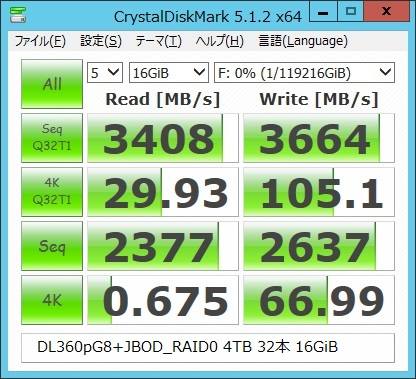 4TB 32本 RAID0構成(ライトバックキャッシュ有効 ドライブキャッシュ無効)