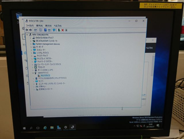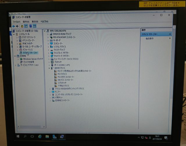 ただし本体ファームウェアが古い場合はファーム自体にバグがあり、「PCIデバイス」となっているデバイスにドライバがあたりません。