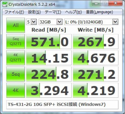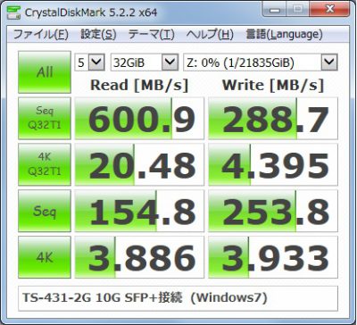思ったほど速度が出ません。むじろCIFSの方が高速でした。続いて32GBで計測。