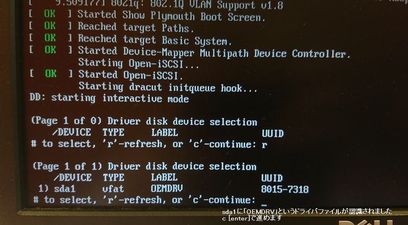 「1)sda1 vfat OEMDRV」となってRAIDのデバイスドライバが認識されます。