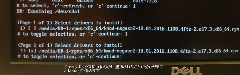 1 [enter]でチェックを入れてからc [enter]で進めます。