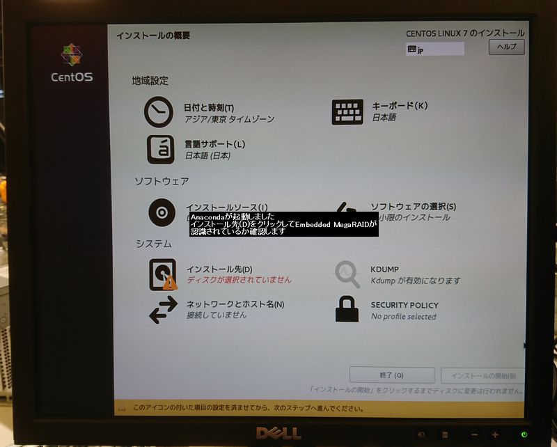 無事CentOS 7.3がインストールされました。