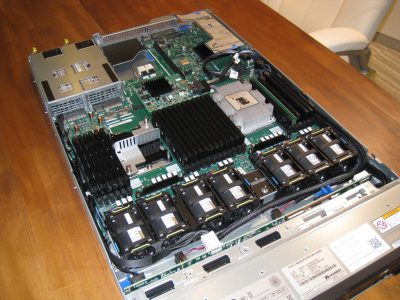 その上にある小さなヒートシンクはメザニン型RAID AVAGO 3508コントローラです。キャッシュ2GBです。
