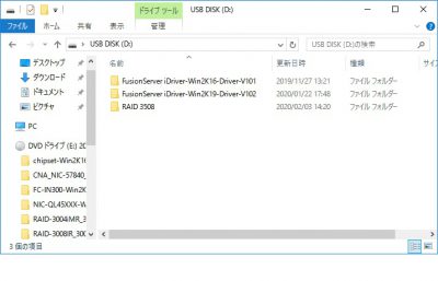 5)SASコントローラ搭載モデルはOSではドライバが当たりませんのでUSBメモリからSAS3508ドライバを適応してください。